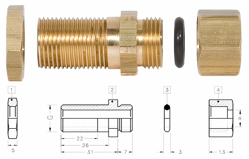 Auswerferführung SW 19 3/8 12 mm O-Ring komplett